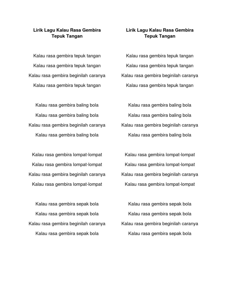 Lirik Lagu Kalau Rasa Gembira Tepuk Tangan Pdf